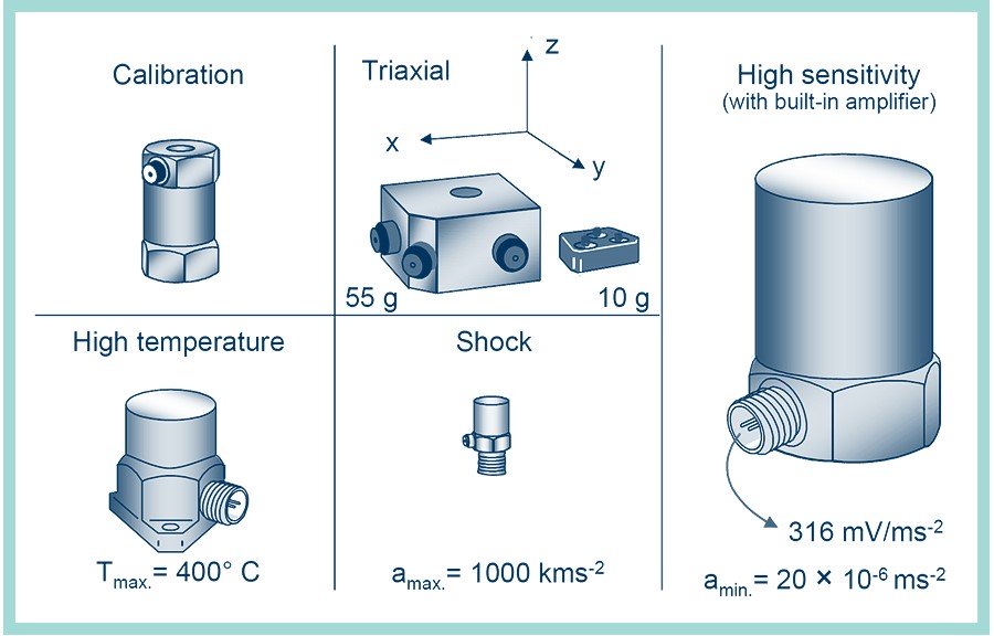 IEPE акселерометри компанії Brüel & Kjær мають високу вихідну чутливість, високе відношення сигнал/шум і широку смугу пропускання, що робить їх придатними як для вимірювань загального призначення, так і для вимірювання високочастотної вібрації.