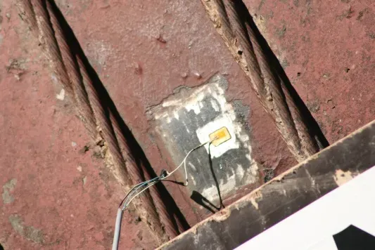 Моніторинг забезпечувався традиційними фольгованими тензорезисторами. Ці тензорезистори, загалом 16 штук, були встановлені за підтримки компанії, що спеціалізується на роботах на подібних об’єктах, які вимагають дотримання заходів безпеки для технічного персоналу, схильного до небезпеки падіння і т.д. «Для того, щоб отримати доступ до даних про деформації, які нас цікавлять, ми розмістили тензорезистори в генераторній конфігурації вздовж штока, праворуч від опор штока, доповнивши їх ще 2 тензорезисторами (розташованими на 3 та 9 годинах) на відстані 2 м вгору від кожної опори. Ми математично об’єднуємо дані, отримані від цих різних тензорезисторів, щоб отримати бажані синтезовані значення», – додає Клер Перо.