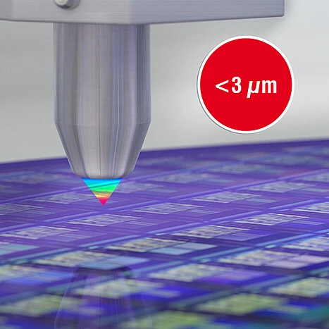 Конфокальні датчики Micro-Epsilon генерують найменші світлові плями <3 мкм завдяки високій числовій апертурі (NA). Таким чином, найдрібніші деталі і структури можуть бути надійно виявлені.