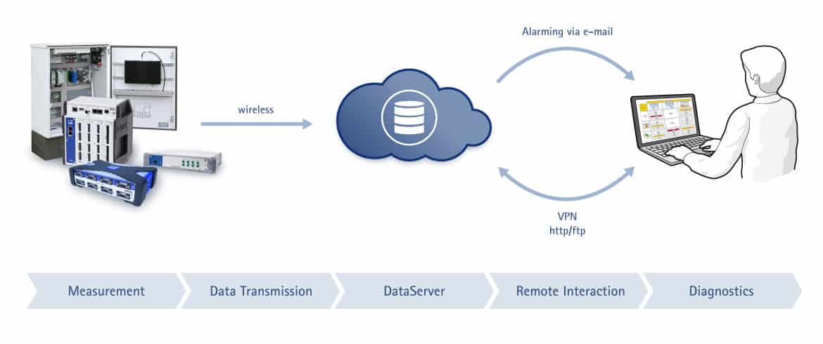 Щоб відстежувати загальні фізичні та матеріальні зміни з часом і реагувати на них до того, як виникне серйозне пошкодження, необхідна ефективна система моніторингу – або для короткочасного вимірювання навантаження, або для довгострокового моніторингу стану конструкції. Система, яка відповідає поставленим цілям, включає в себе відповідні датчики, дані вимірювань, безпечну передачу даних, автоматичний аналіз даних, сигналізацію та сповіщення про події, комплексні журнали, а також дистанційну діагностику та управління.